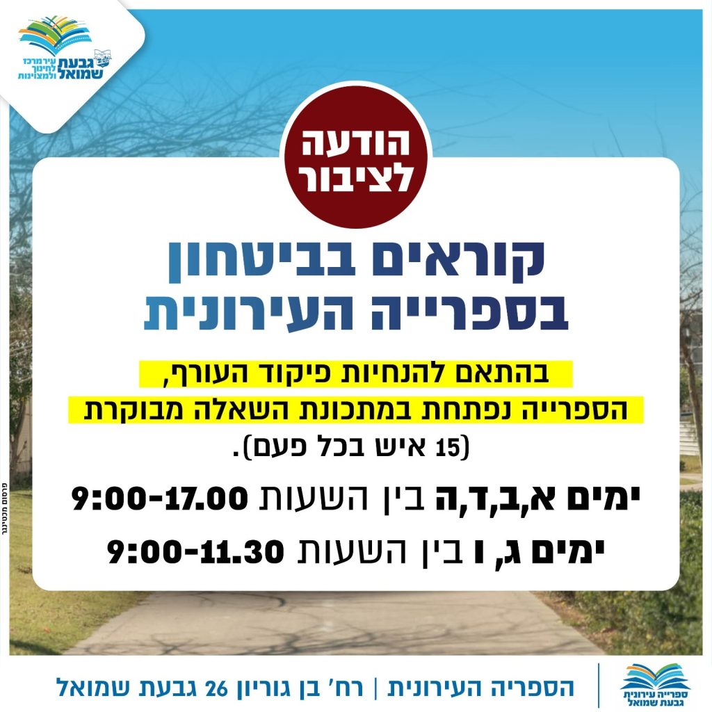 בדיוק לשם כך, בניסיון לספק מעט שגרה, אסקפיזם ותעסוקה חינוכית למשפחות, הספרייה העירונית של גבעת שמואל הודיעה על חזרה לפעילות תחת הכותרת “קוראים בביטחון”.
